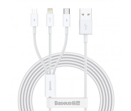 USB-A to Lightning / microUSB / USB-C Charging Cable Baseus Superior Series, 20W, 2A, 1.2m, White CAMLTYS-02