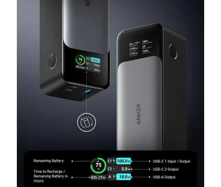 Powerbank Anker 737, 24000mAh, 140W, QC + PD, Black A1289011