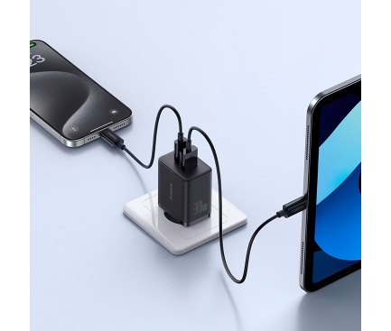 Wall Charger Baseus Cube, 30W, 2.4A, 1 x USB-A – 1 x USB-C, Black P10111404113-00