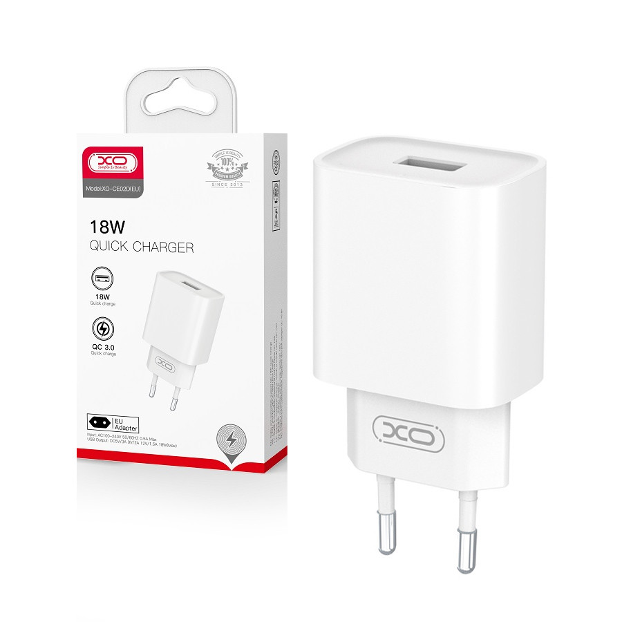 Travel charger XO CE02D QC 3.0 18W 1x USB white