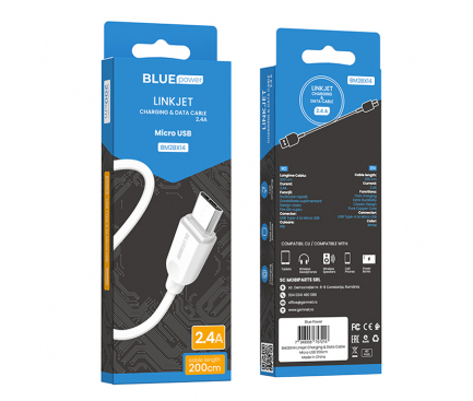 USB-A to microUSB Cable Blue Power BM2BX14 LinkJet, 18W, 2.4A, 2m, White