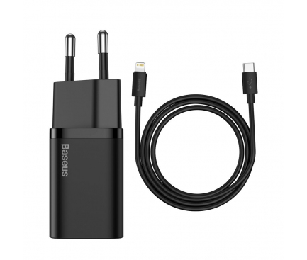 Wall Charger Baseus Super Si, 20W, 3A, 1 x USB-C, with Lightning Cable, Black TZCCSUP-B01
