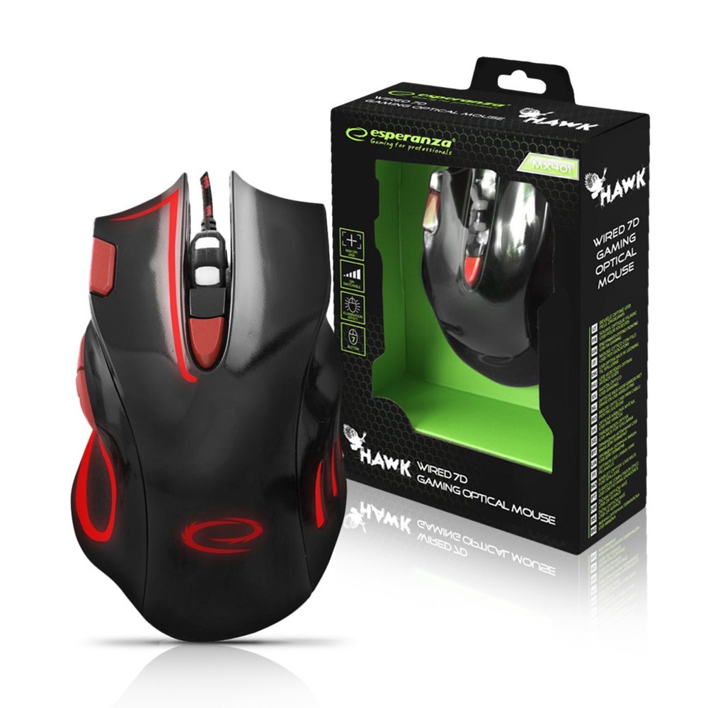 Mouse GAMINGOWA LED 7D USB ESPERANZA EGM401KR HAWK CZARNO-Rosso