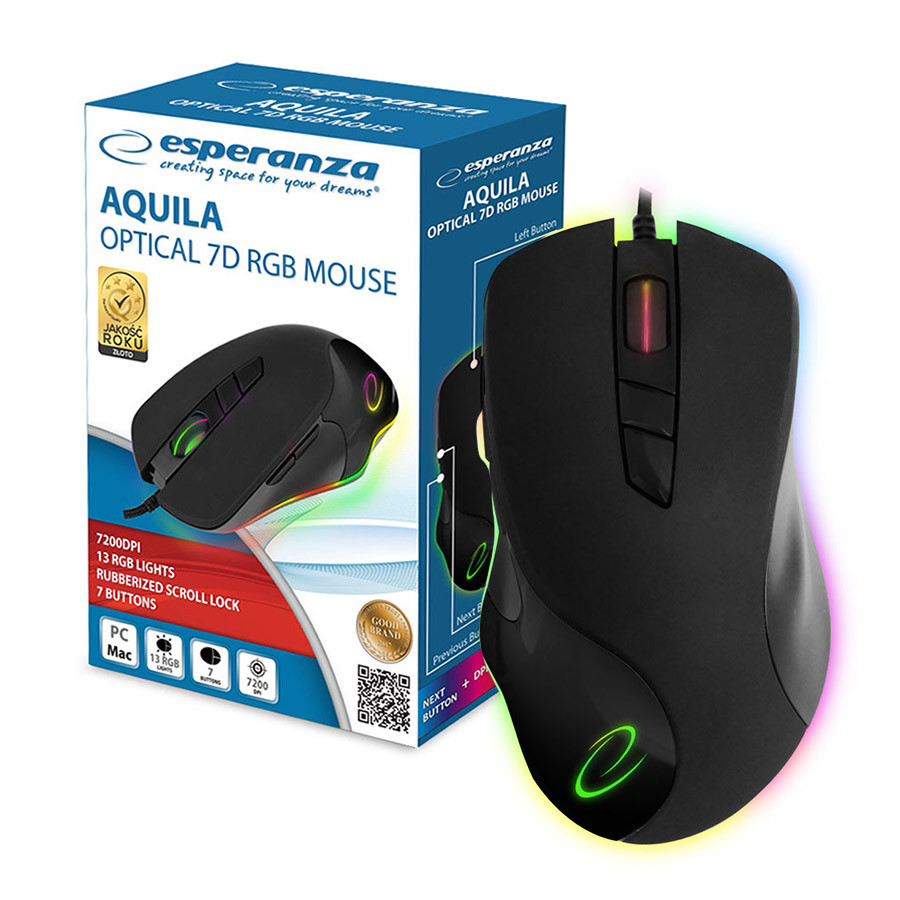 Mouse PRZEWODOWA ESPERANZA LED RGB 7D OPT. USB AQUILA