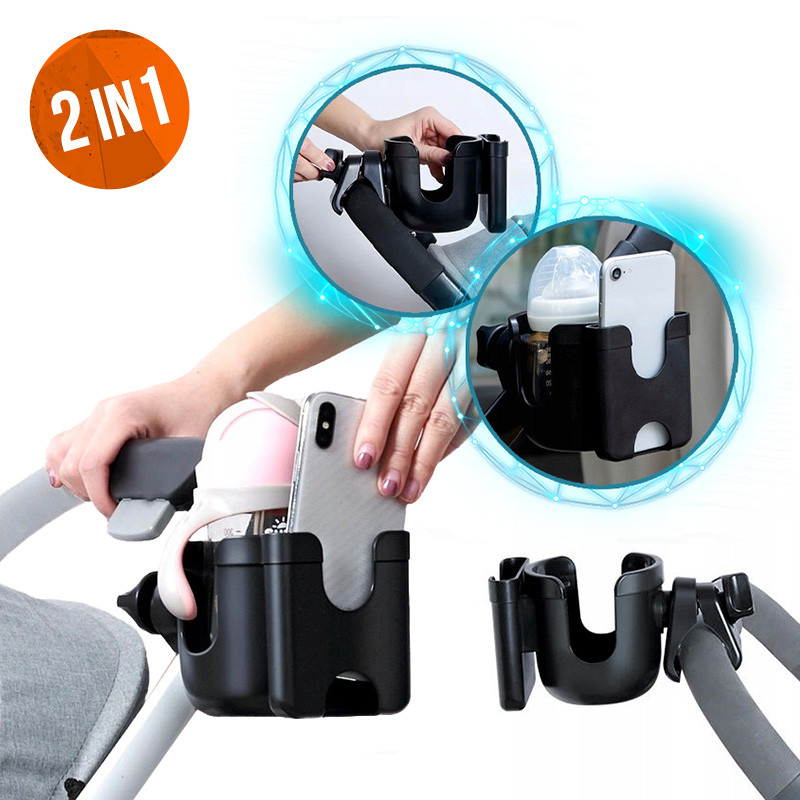 Supporto per wózka porta bicchiere butelkę telefon 2w1