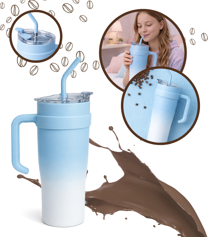 Kubek termiczny 1200ml ze słomką gradient Blu