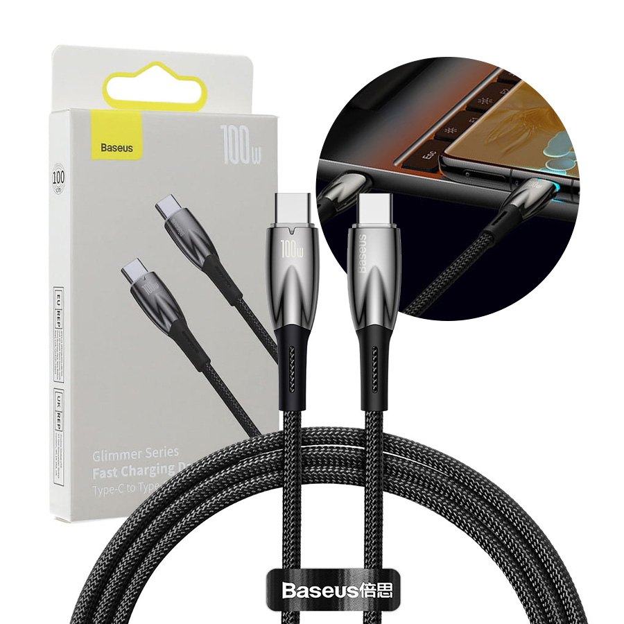 Cavo Baseus Glimmer Series szybkie ładowanie USB-C 480Mb/s PD 100W 1m Nero