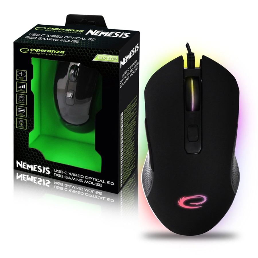 Mouse GAMINGOWA LED RGB 6D OPTYCZNA USB-C ESPERANZA EGM302 NEMESIS
