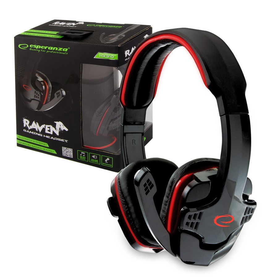 SŁUCHAWKI Z MIKROFONEM GAMING ESPERANZA EGH310R RAVEN Rosso