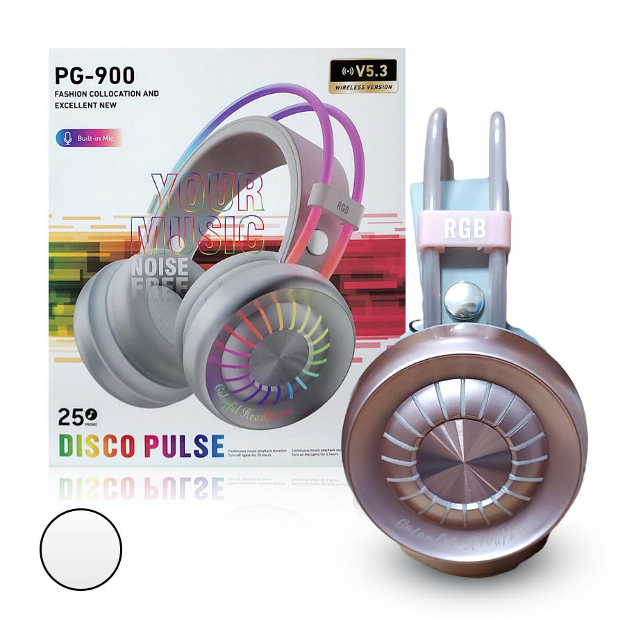SŁUCHAWKI BLUETOOTH PG-900 RGB DISCO PULSE BIAŁE