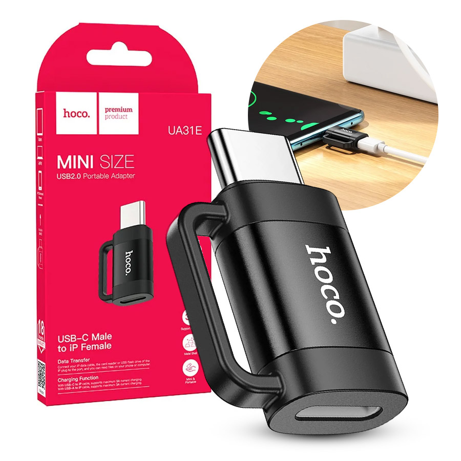 Adapter HOCO OTG Typ C (męski) per Lightning (żeński) 3A UA31E Nero