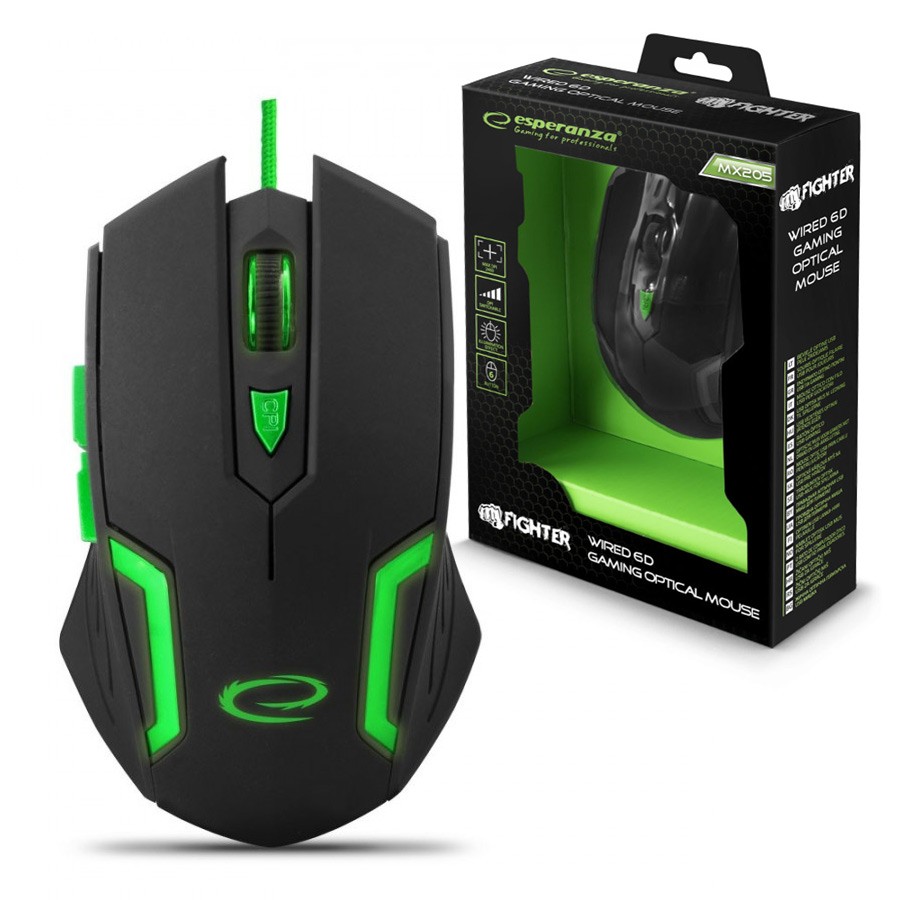 Mouse GAMINGOWA LED 6D OPTYCZNA USB ESPERANZA EGM205G FIGHTER Verde