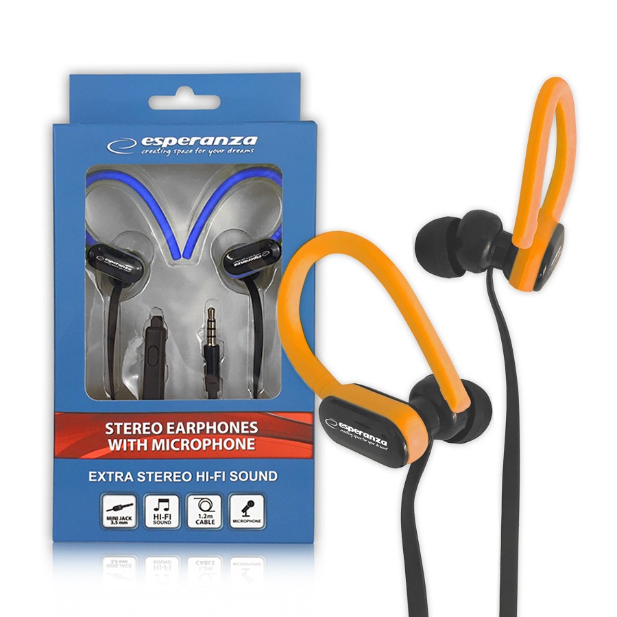 SŁUCHAWKI DOUSZNE Z MIKROFONEM ESPERANZA EH197 CZARNO-POMARAŃCZOWE
