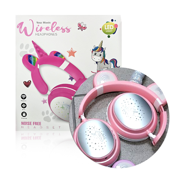 SŁUCHAWKI BLUETOOTH UNICORN Z USZAMI PG-86 LED LIGHT JASNO RÓŻOWE