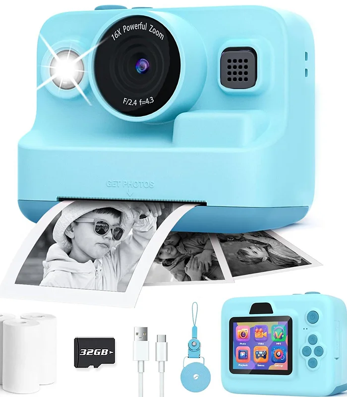 fotocamera FOTOGRAFICZNY DLA DZIECI Z DRUKARKĄ 3 ROLKI Blu