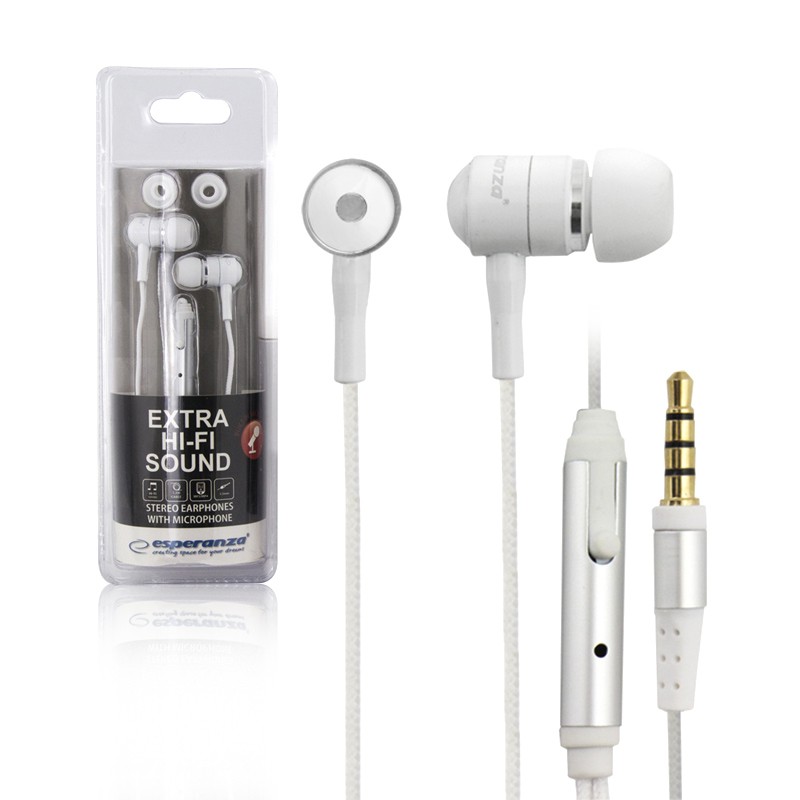 SŁUCHAWKI DOUSZNE Z MIKROFONEM ESPERANZA EH162W MOBILE BIAŁE