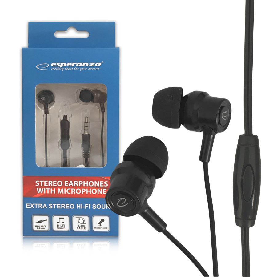 SŁUCHAWKI DOUSZNE Z MIKROFONEM ESPERANZA EH189 Nero