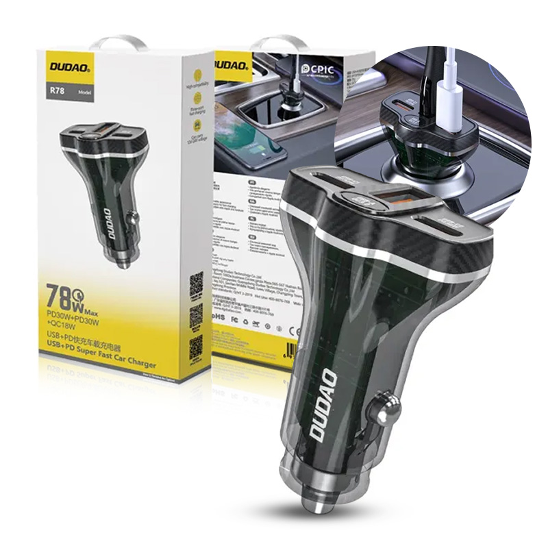 Caricabatterie da auto Dudao R78 78W USB-C PD / 2xUSB-A QC Nero