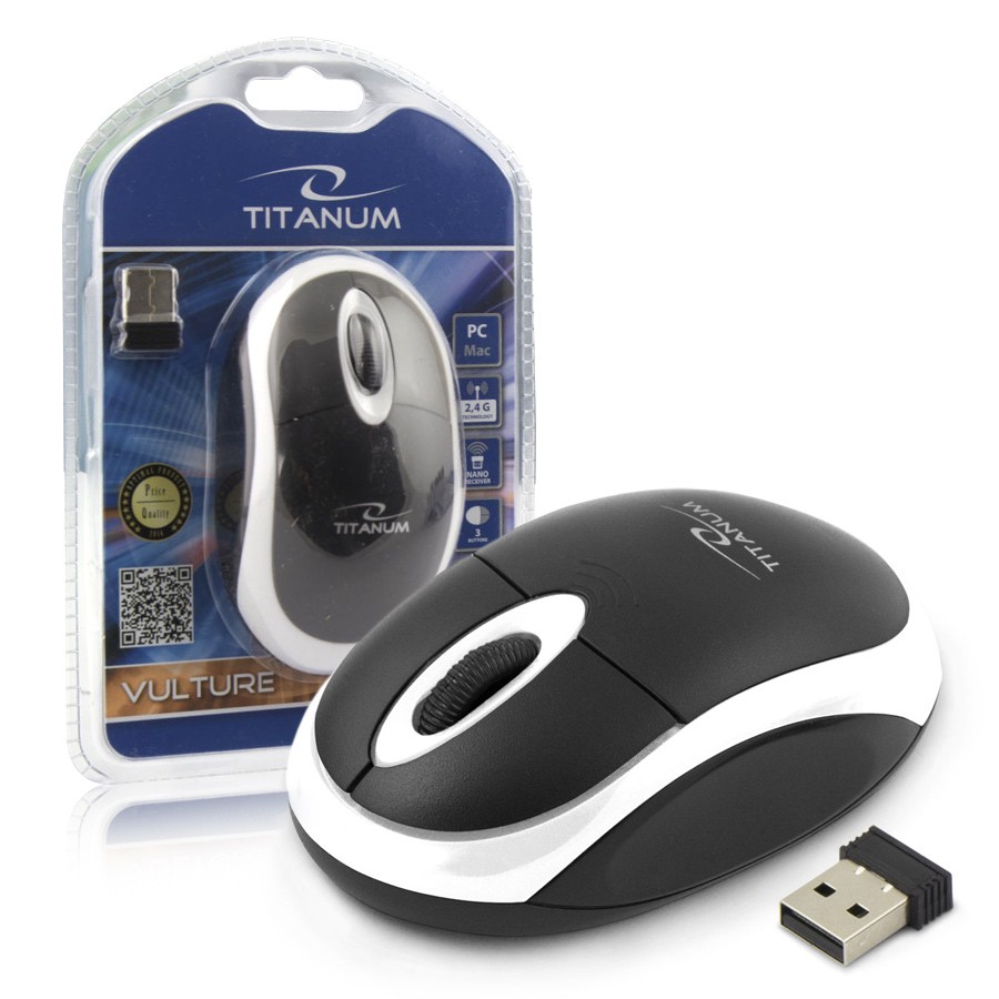 Mouse BEZPRZEWODOWA 2.4GHZ 3D OPTYCZNA USB TITANUM TM116W VULTURE CZARNO-BIAŁA