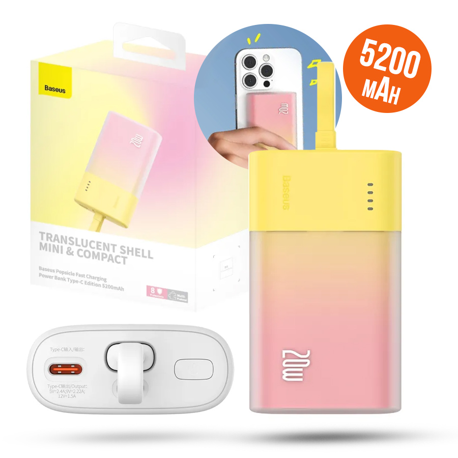 Power bank Baseus Popsicle 5200mAh 20W Cavo Lightning (+ Cavo USB-C /USB-C 60W/30cm) żółto-Rosa
