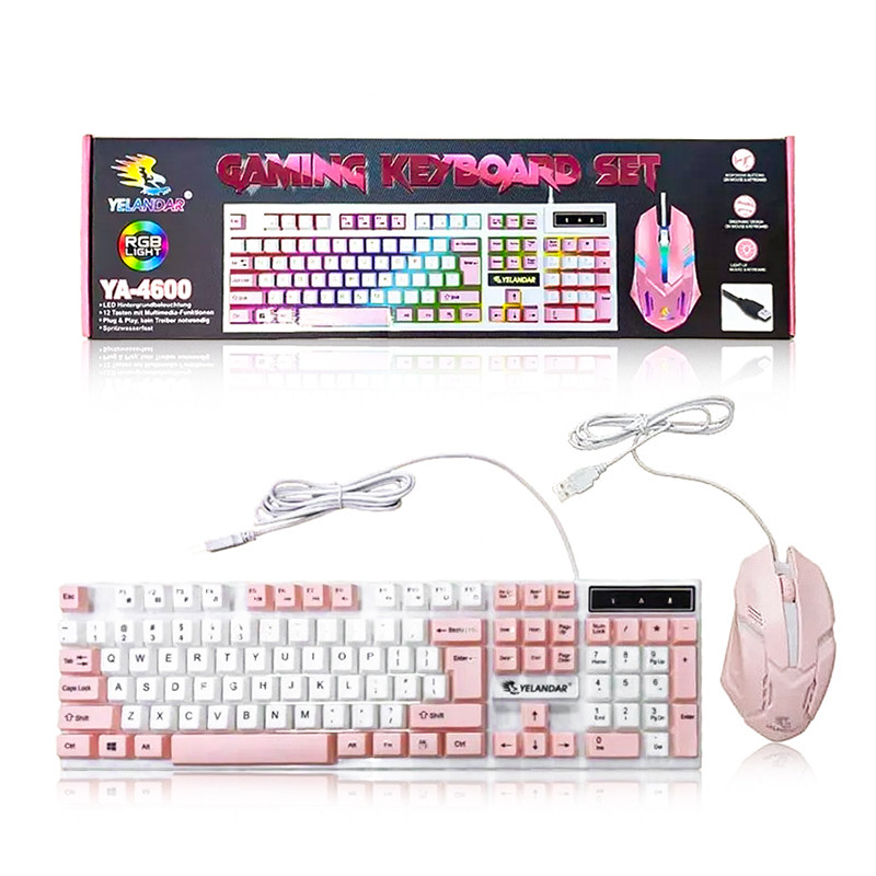 Set Tastiera i Mouse komputerowa RGB Rosa