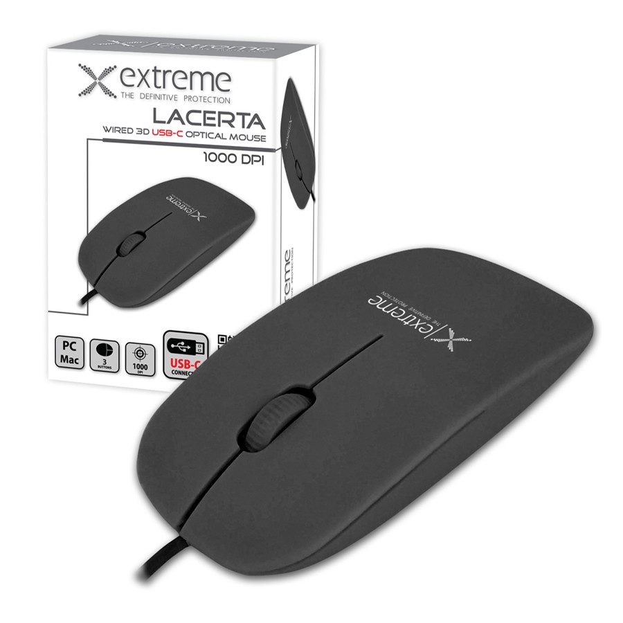 Mouse PRZEWODOWA 3D OPTYCZNA USB-C EXTREME XM111K LACERTA Nero