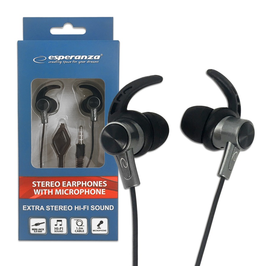 SŁUCHAWKI DOUSZNE Z MIKROFONEM ESPERANZA EH198 CZARNO-GRAFITOWE