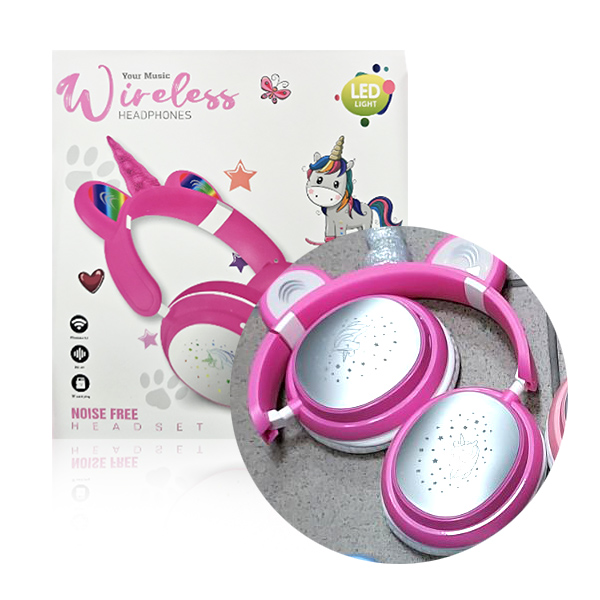 SŁUCHAWKI BLUETOOTH UNICORN Z USZAMI PG-86 LED LIGHT scuro RÓŻOWE