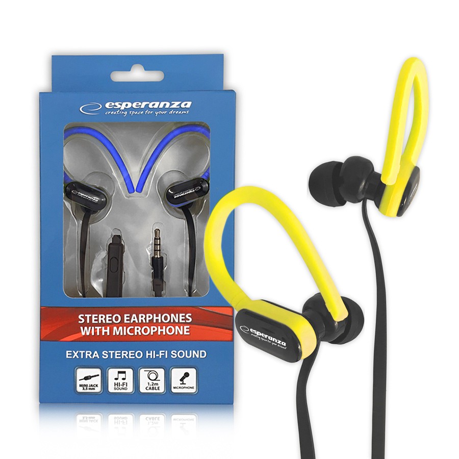 SŁUCHAWKI DOUSZNE Z MIKROFONEM ESPERANZA EH197 CZARNO-ŻÓŁTE
