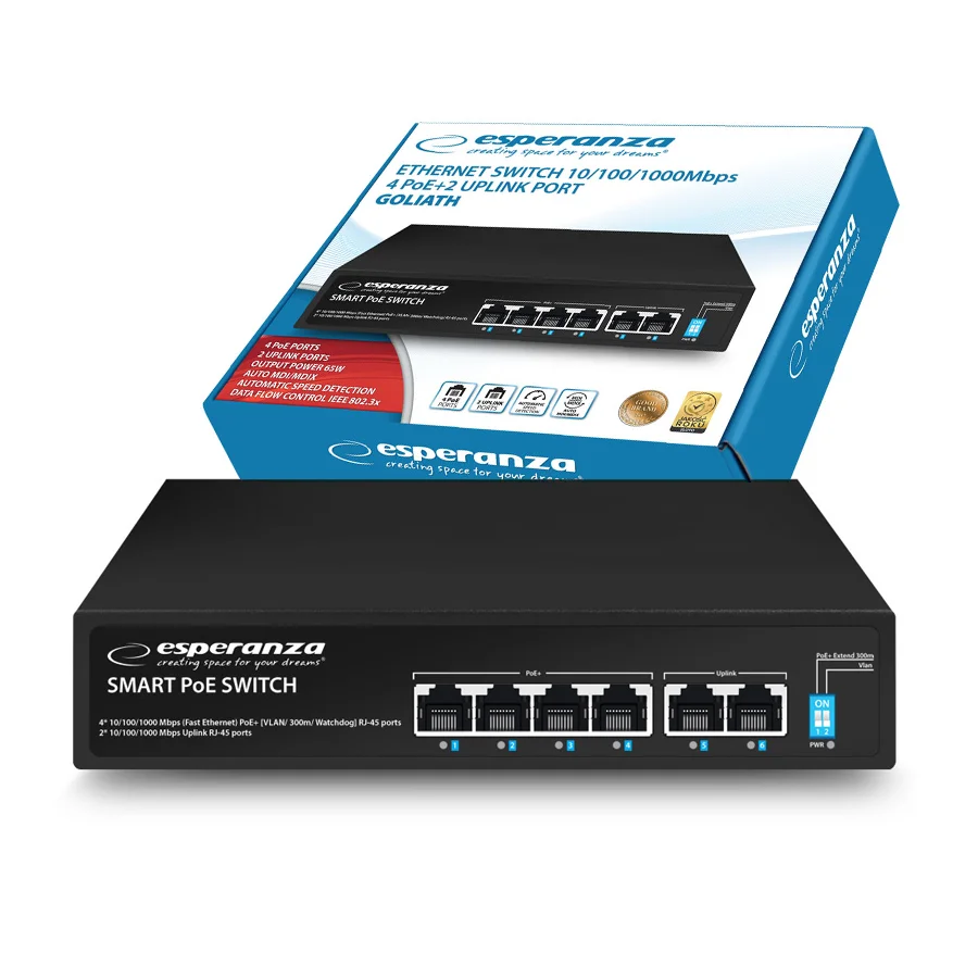 SWITCH ESPERANZA 6-PORTOWY POE 10/100/1000 65W GOLIATH