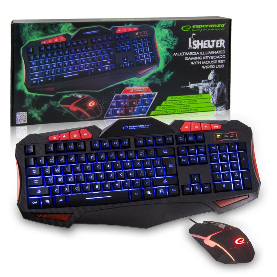 ZESTAW PRZEWODOWY Tastiera I MouseKA GAMING LED USB ESPERANZA EGK3000 SHELTER_