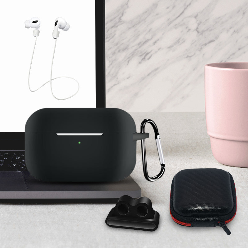 Silikonowe Custodia AirPods Pro 1/ 2 + futerał/ zaczep per ucho i szyję/ Supporto per Cinturino zegarka Nero zestaw
