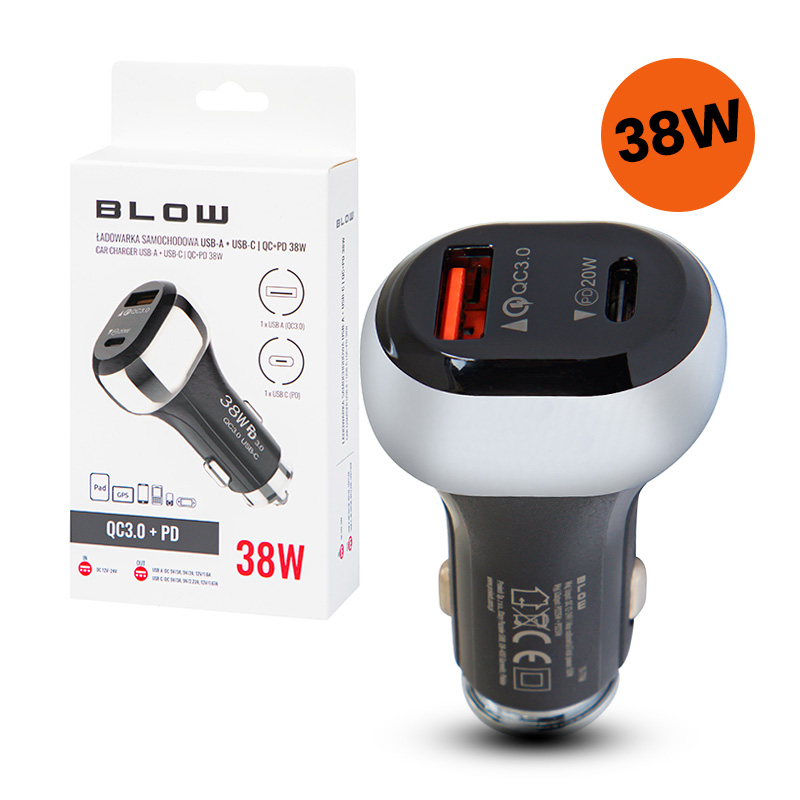 Caricabatterie da auto BLOW USB+USB-C 38W G38A 75-777