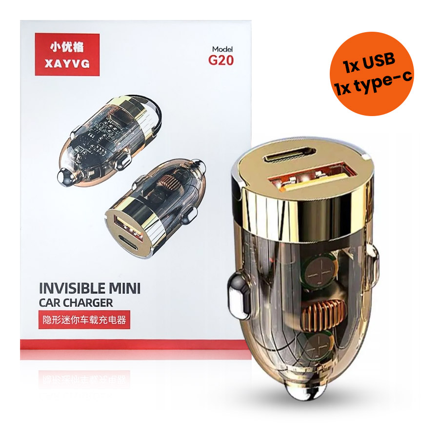 Caricabatterie da auto 1x USB 1x USB-C MINI INVISIBLE MODEL G20 BOX