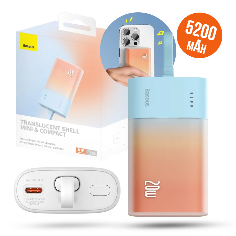 Power bank Baseus 5200mAh 20W Cavo Lightning (+Cavo USB-C 30cm) niebiesko-Arancione