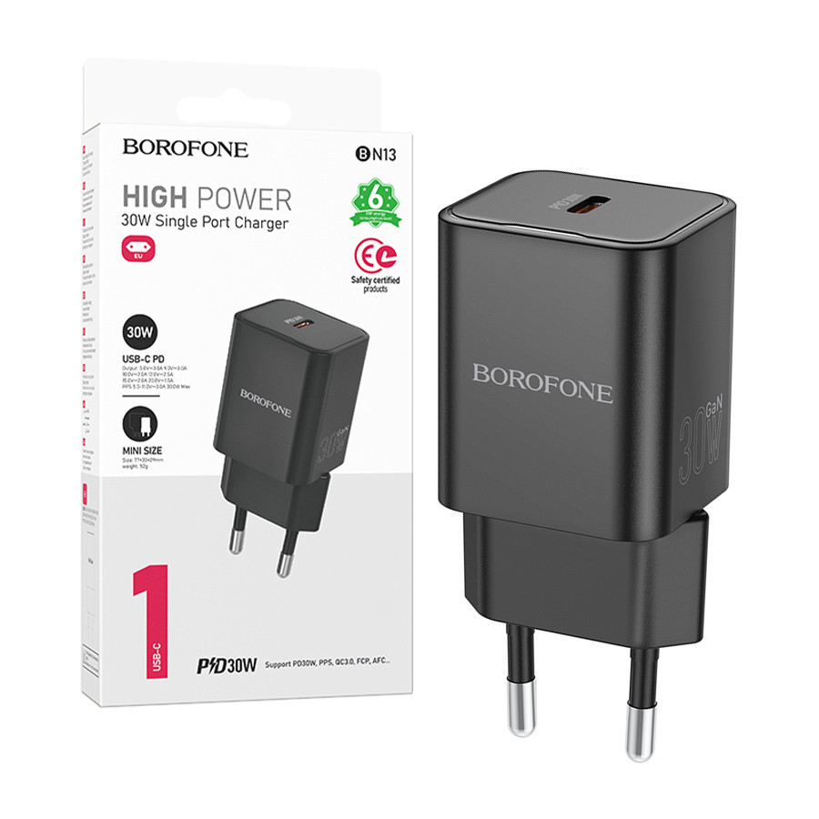 Caricatore Borofone BN13 Safety Typ C PD 30W Nero