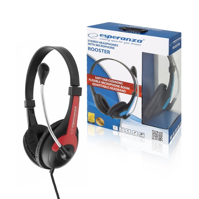 SŁUCHAWKI Z MIKROFONEM ESPERANZA EH158R ROOSTER Rosso