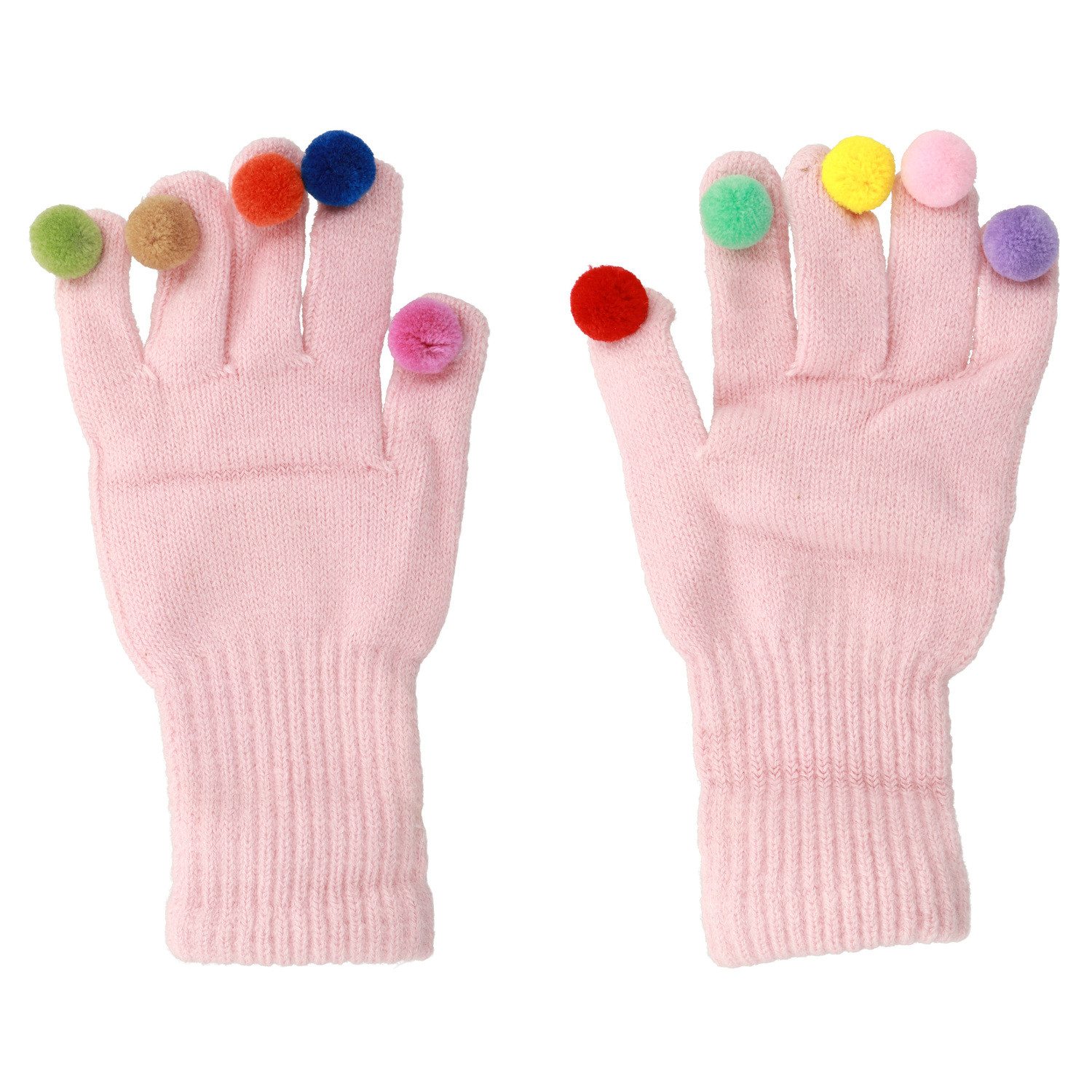 Guanti per touch screen z pomponami RÓŻOWE