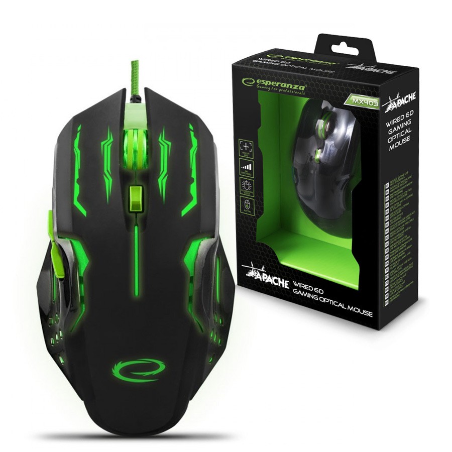 Mouse GAMINGOWA LED 6D OPTYCZNA USB ESPERANZA EGM403G APACHE Verde