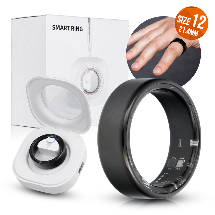 Smart Ring R11M- inteligentny pierścień ze stali ze stacją ładującą rozmiar 12 (21,4mm) Nero