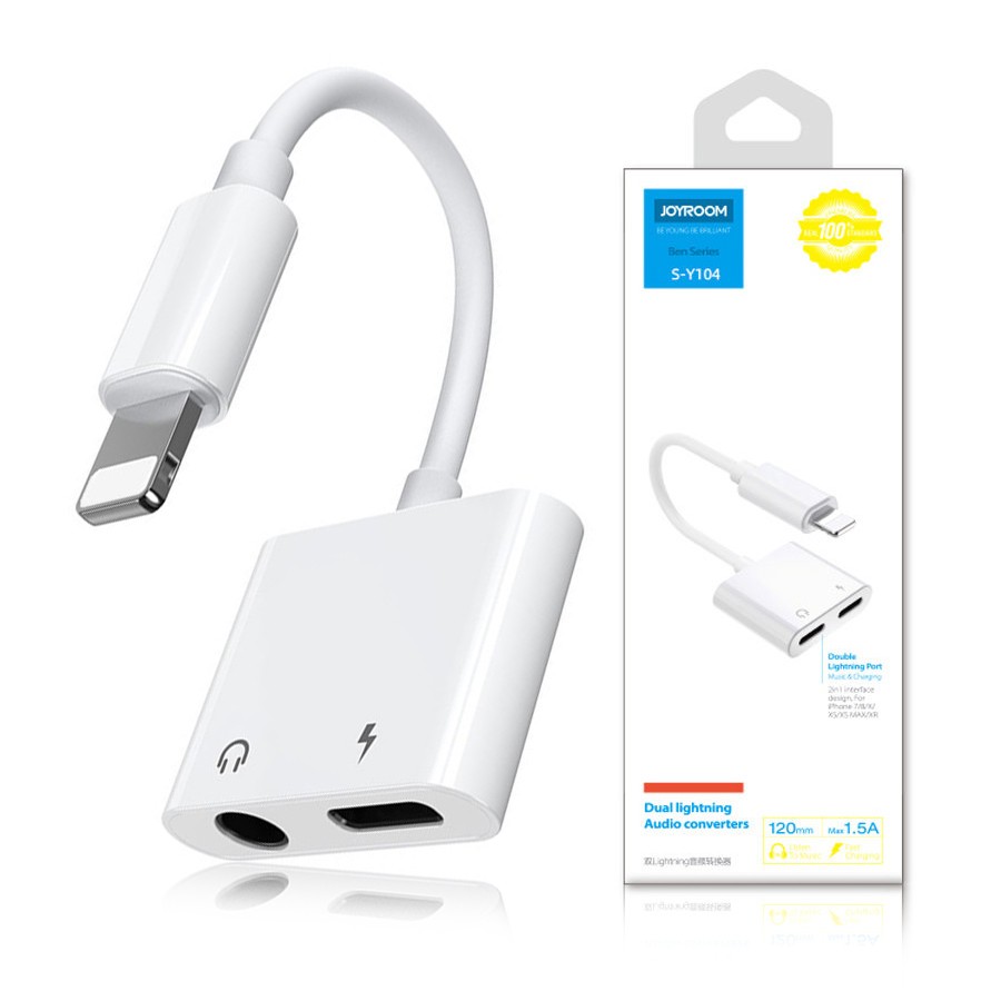 Adapter Joyroom rozdzielacz Lightning - Lightning/ 3.5 mm mini jack (S-Y104) Bianco