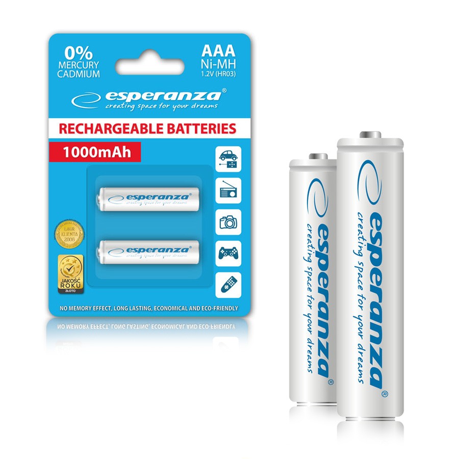 AKUMULATORKI ESPERANZA NI-MH AAA 1000MAH 2Pz BIAŁE