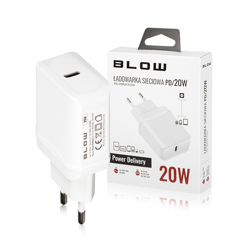 Caricabatterie da muro con porta USB-C BLOW PD3.0 20W 76-009