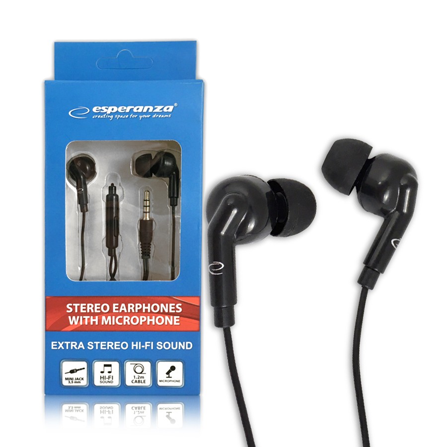 SŁUCHAWKI DOUSZNE Z MIKROFONEM ESPERANZA EH190 Nero