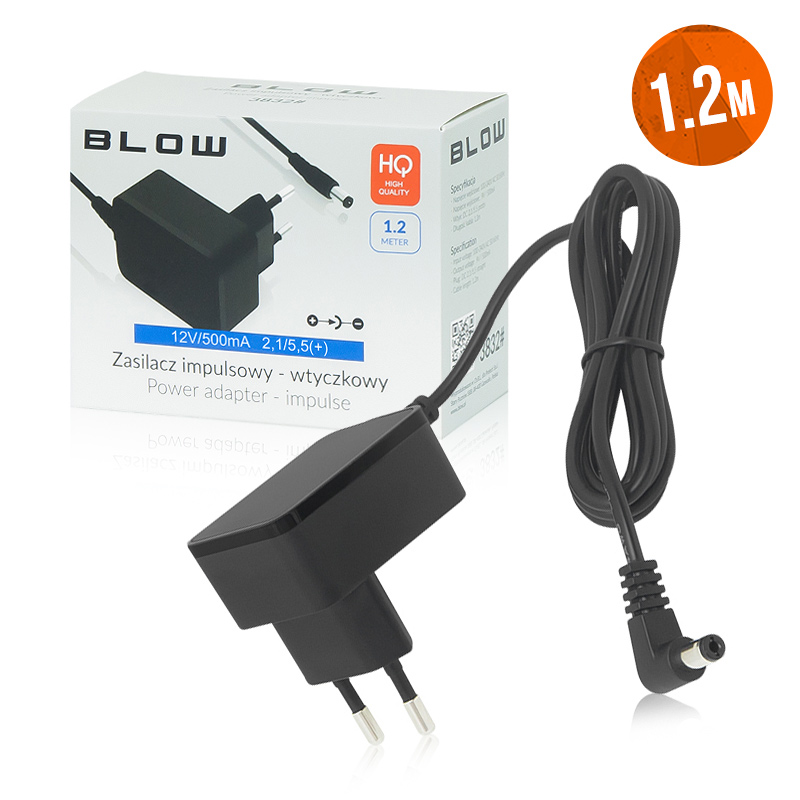 Alimentatore impulsowy BLOW 9V/ 500mA2,1/5,5(+) MINI da muro/presa 3845