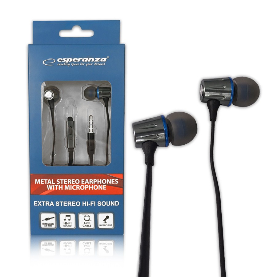 SŁUCHAWKI DOUSZNE METALOWE Z MIKROFONEM ESPERANZA EH203 GRAFITOWO-BluE