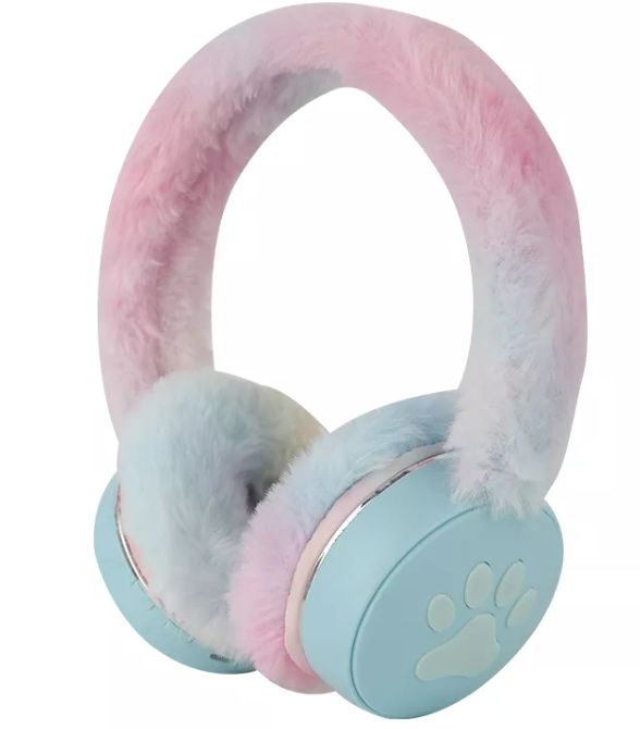 SŁUCHAWKI BLUETOOTH LED PLUSZOWE NAUSZNIKI Blue